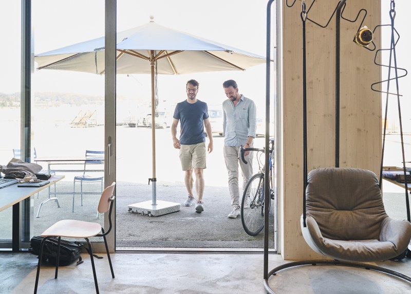 Büro Züri, housed in a small building (the former fire station of airfield Dübendorf) with just over 20 workspaces, an open kitchen, and meeting rooms, offers a year of free residency. A project of Zürcher Kantonalbank, five to seven start-ups are handpicked annually to join. "We benefit from the daily exchange here," says Fabio Wullschleger from the start-up Sanetics. "For instance, we filed a patent for our SaniGuide. You can easily ask around if someone has experience with patents, Innosuisse applications, or funding rounds. This way, you’re constantly sharing knowledge."