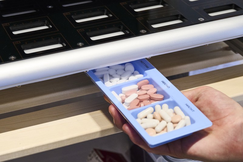 SaniGuide manages and monitors medication distribution using a color-coded system and a camera, saving time, improving control, and ensuring that everything is digitally recorded.